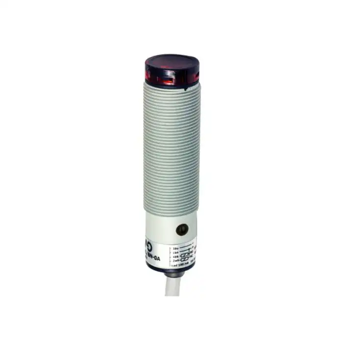 Polarizovani PNP NO+NC senzor sa dometom do 4m, crvenim LED zračenjem i IP67 zaštitom, idealan za pouzdanu detekciju objekata koristeći reflektor RL110 u industrijskim uslovima.