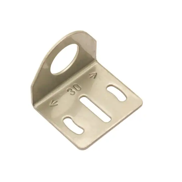 Nosač pod pravim uglom od nerđajućeg čelika za M18 senzore, montaža M4 vijcima.
