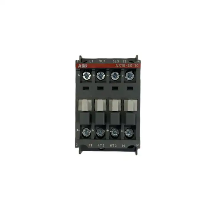 AX18-30-10-80 je trofazni kontaktor proizvođača ABB, namenjen za kontrolu trofaznih motora i naponskih krugova do 690 V AC. Ovaj kontaktor ima blok-dizajn sa tri glavne kontaktne grane i jednim ugrađenim pomoćnim kontaktom. Kontrolni krug je AC upravljan, a dostupni su i dodaci kao što su pomoćni kontakt blokovi za prednju ili bočnu montažu.