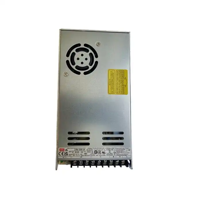 Napajanje u metalnom kućištu snage 350 W sa stabilizovanim izlazom 24 VDC i strujom do 14,6 A, ventilatorskim hlađenjem i jednim izlazom za pouzdano industrijsko napajanje.