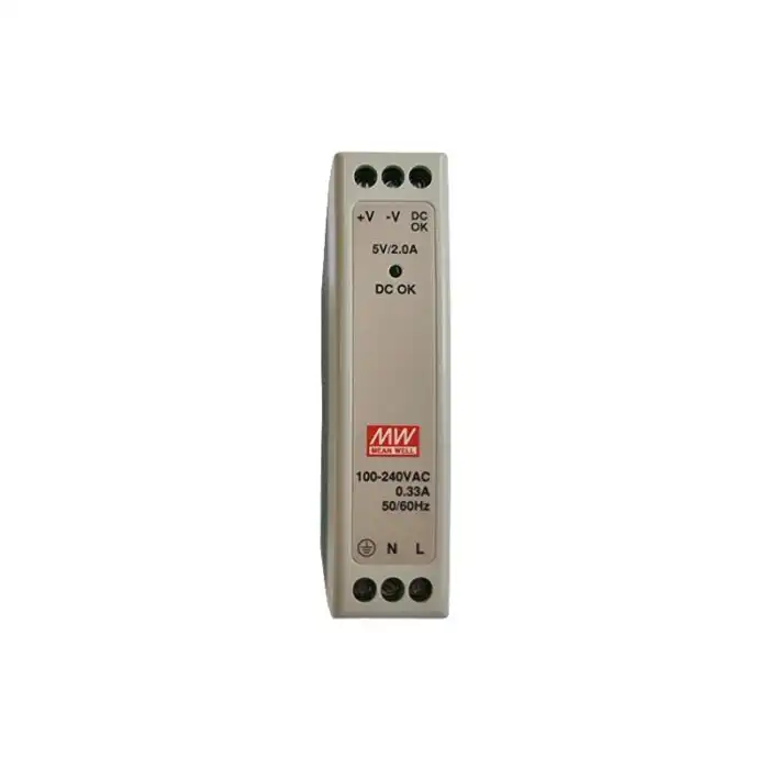 DIN šinski napajanje snage 10 W sa stabilizovanim izlazom 5 VDC i strujom do 2 A, pasivnim hlađenjem i jednim izlazom za pouzdano napajanje uređaja.