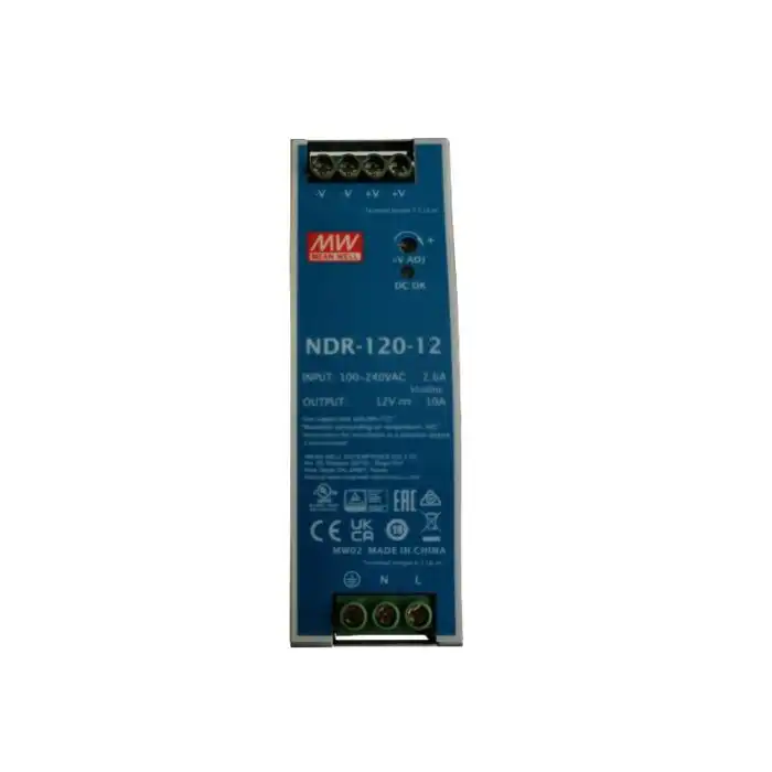 Napajanje za DIN šinu snage 120 W sa jednim izlazom 12VDC / 10A. Stabilisan izlazni napon od 12VDC i širok ulazni opseg 90–264VAC. Pasivno hlađenje i kućište za DIN letvu omogućavaju pouzdano i efikasno rešenje za industrijske i sigurnosne sisteme.