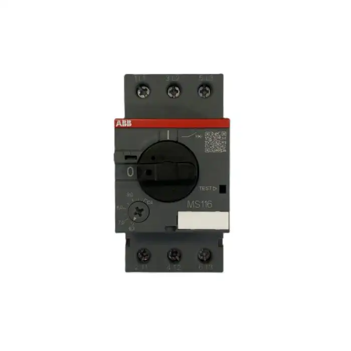ABB MS116-10 je ručni motorni starter dizajniran za zaštitu motora od kratkih spojeva, preopterećenja i faznih kvarova, bez potrebe za dodatnim osiguračima. Ovaj model ima podesivi raspon struje od 6,3 do 10 ampera.