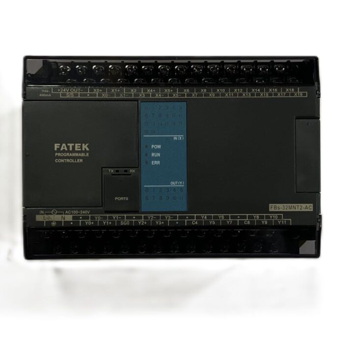 FBs-32MNT2-AC je programabilni logički kontroler (PLC) iz FATEK FBs serije sa 32 digitalne I/O tačke, AC napajanjem i tranzistorskim izlazima, idealan za zahtevne industrijske aplikacije koje zahtevaju brz odziv i pouzdanu kontrolu.