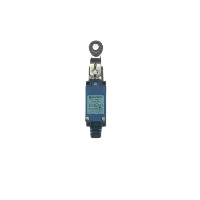 Model AZ-8104 iz serije AZ krajnjih prekidača proizvođača Auspicious je robustan i pouzdan graničnik koji koristi polugu sa točkićem za aktivaciju. Mehanička aktivacija generiše momentalno preklapanje kontakata – jedan normalno otvoreni (NO) i jedan normalno zatvoreni (NC) kontakt – što omogućava detekciju krajnjih položaja u pokretnim mehanizmima. Kućište je izrađeno od otporne plastike sa metalnim aktuatorom, što obezbeđuje dug vek trajanja u industrijskom okruženju.