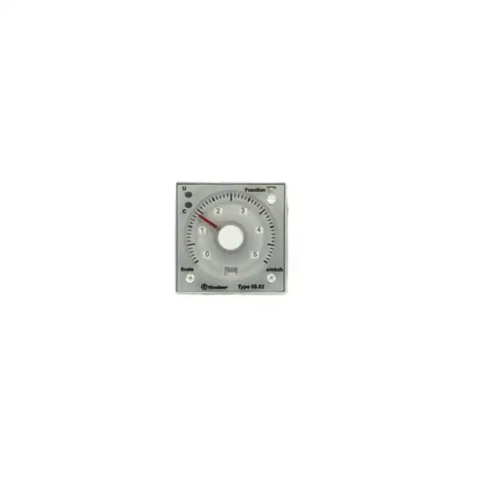 Finder serija 88 tajmer modul sa DPDT izlazom (250V AC/5A), 7 režima rada, okruglim ležištem za montažu, radnom temperaturom od -10 do 55°C i naponom napajanja 24–230V AC/DC.